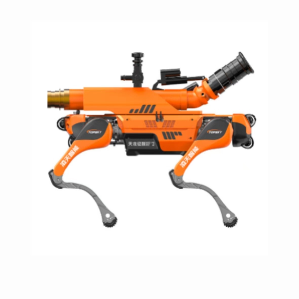 El perro robótico de cuatro patas para la lucha contra incendios es un equipo de rescate avanzado que combina biónica y tecnología inteligente, diseñado específicamente para escenarios de incendio complejos y de alto riesgo.Cuenta con una adaptabilidad superior al terreno y desempeña un papel fundamental en las operaciones de rescate y respuesta a desastres.